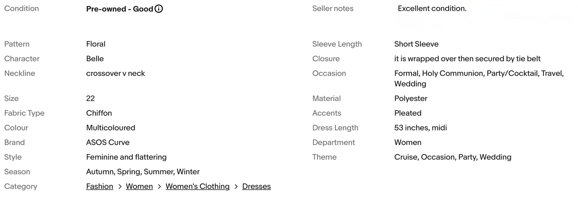 ASOS CURVE FLORAL PRINT PLEATED REAL WRAP OCCASION PARTY DRESS SIZE 22
