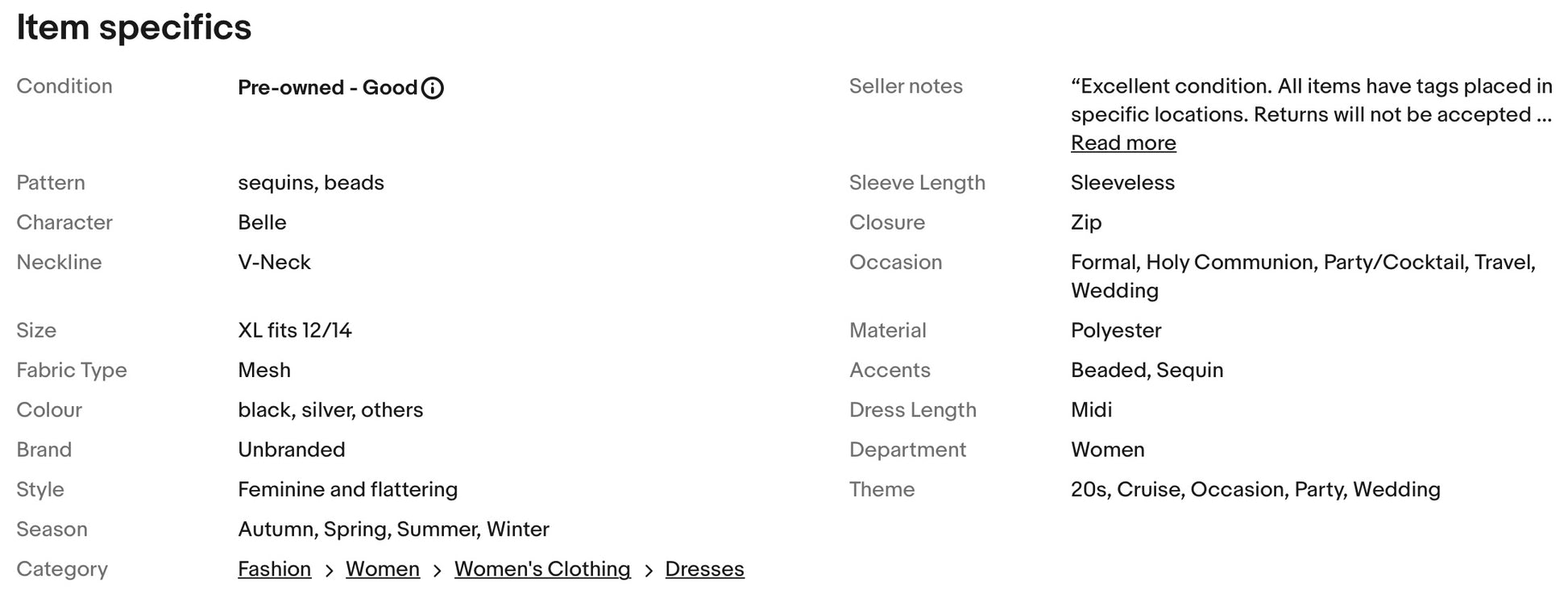 LADIES SEQUINS BEADS 20s GATSBY OCCASION PARTY DRESS SIZE XL FITS 12/14