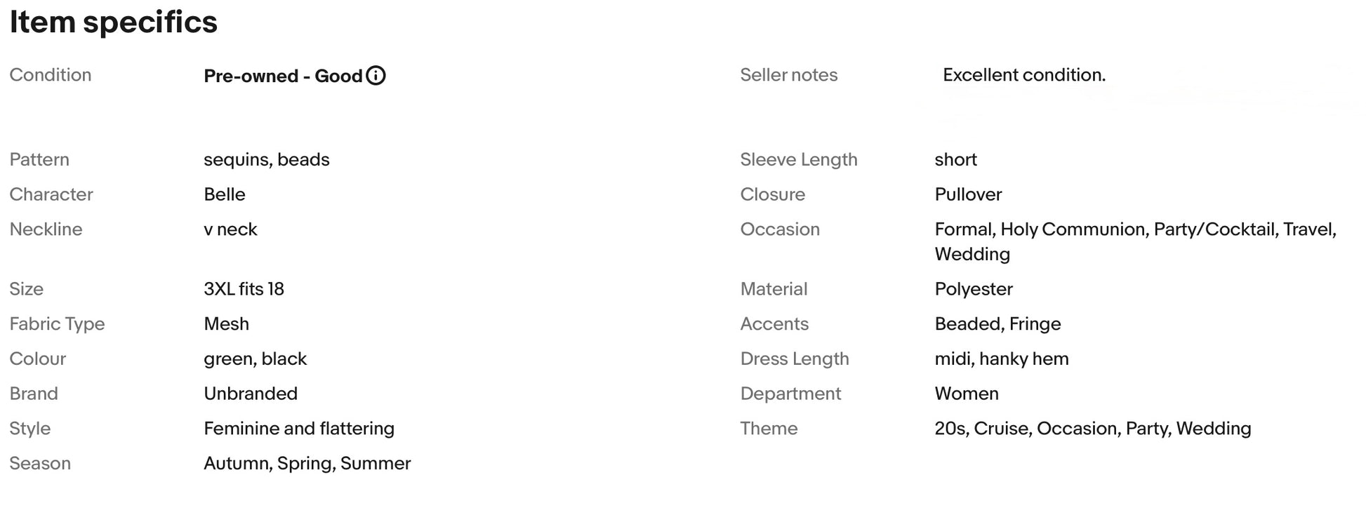 LADIES SEQUINS BEADS FRINGES 20s GATSBY OCCASION PARTY DRESS SIZE 3XL FITS 18
