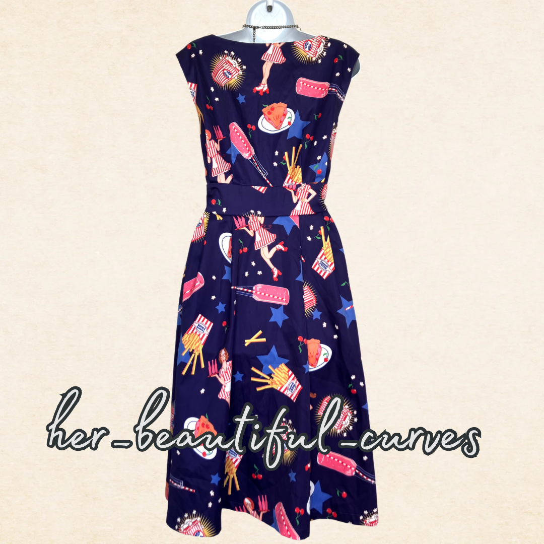 LINDY BOP CUTE DINER THEME PATTERN WEDDING OCCASION PARTY DRESS SIZE 16
