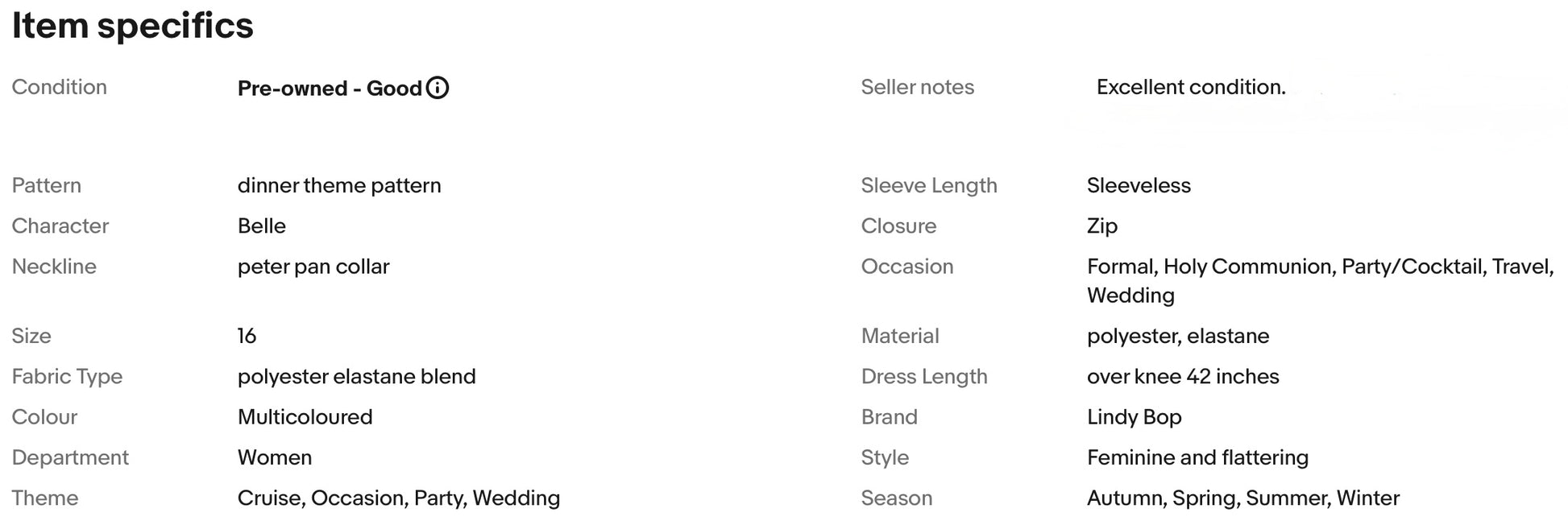 A stunning dress from Lindy Bop. It features flattering Peter Pan collar, gorgeous cute dinner theme print (popcorn, french fries, sandwiches, ice lolly, waitresses etc. ), nipped in waist, falls to over knee length.