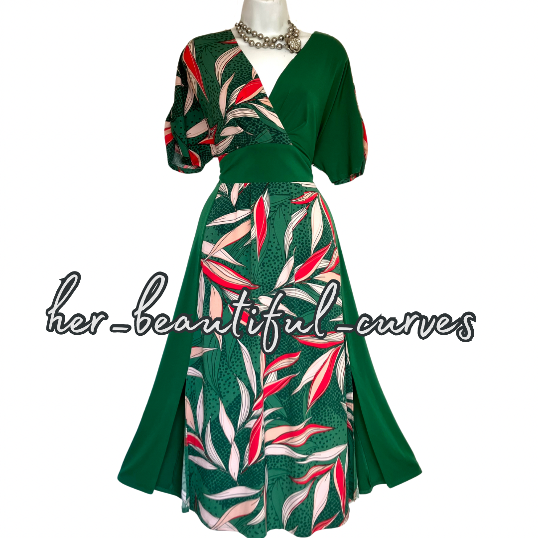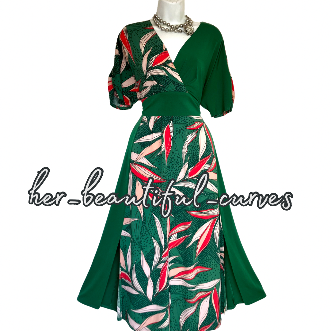 A stunning dress from Monsoon. It is preloved, in excellent condition. It features flattering crossover v neckline, gorgeous botanic print, tie belt highlighting perfect feminine silhouette, falls to glamorous midi length.