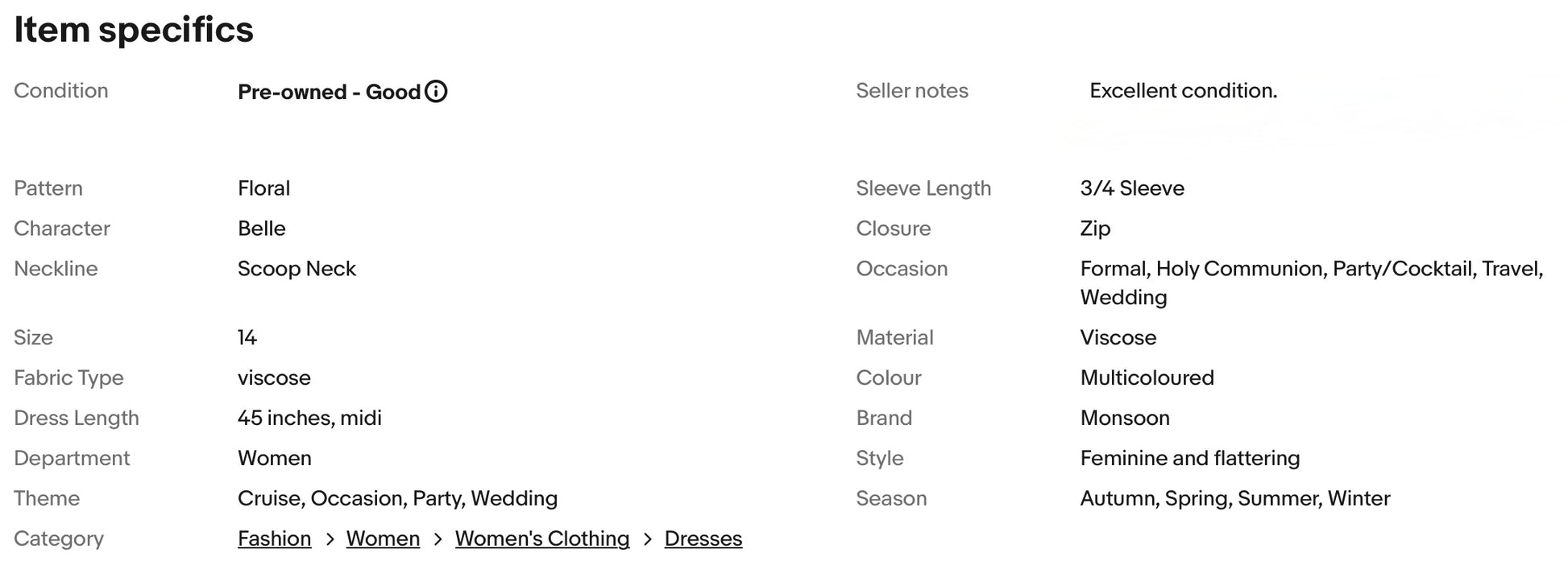 A stunning dress from Monsoon. It features flattering scoop neckline, gorgeous floral print, nipped in waist, falls to glamorous midi length.
