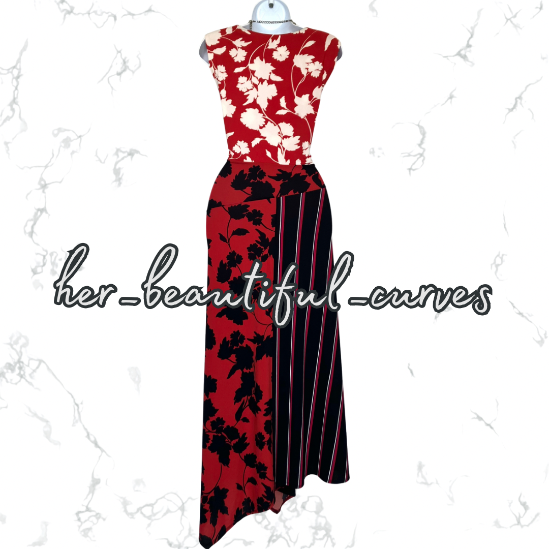 MONSOON FLORAL & STRIPES HANDKERCHIEF HEM JERSEY PARTY DRESS SIZE 20