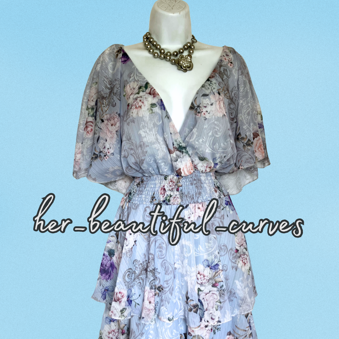 QUIZ FLORAL PRINT GLITTERING THREADS TIERED MIDI OCCASION PARTY DRESS SIZE 22