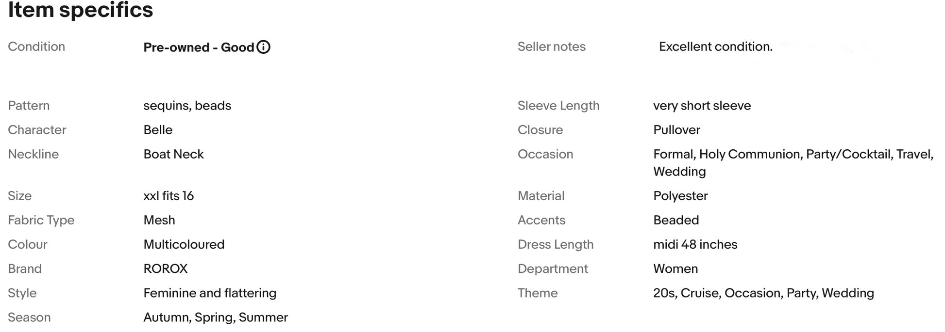 ROROX SEQUINS BEADS 20s GATSBY OCCASION PARTY DRESS SIZE XXL FITS 16